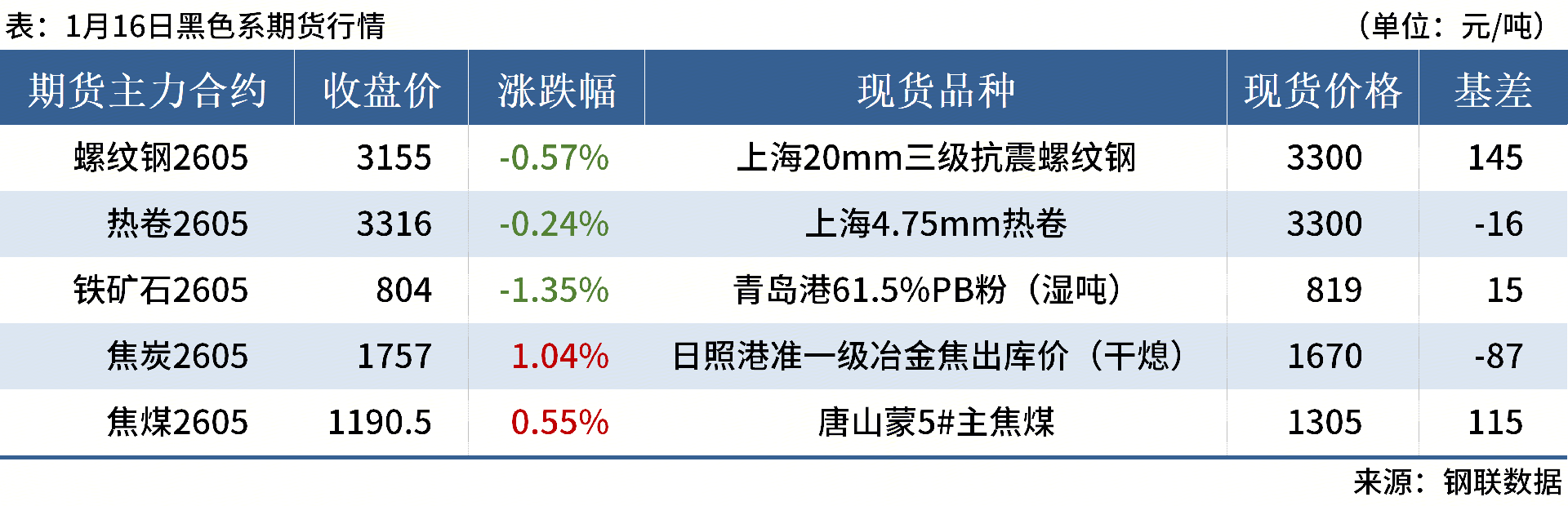 ◎ 1月16日,全國主港鐵礦石成交111.23萬噸,環(huán)比增13.4%;237家主流貿(mào)易商建筑鋼材成交9.51萬噸,環(huán)比增10.4%。
