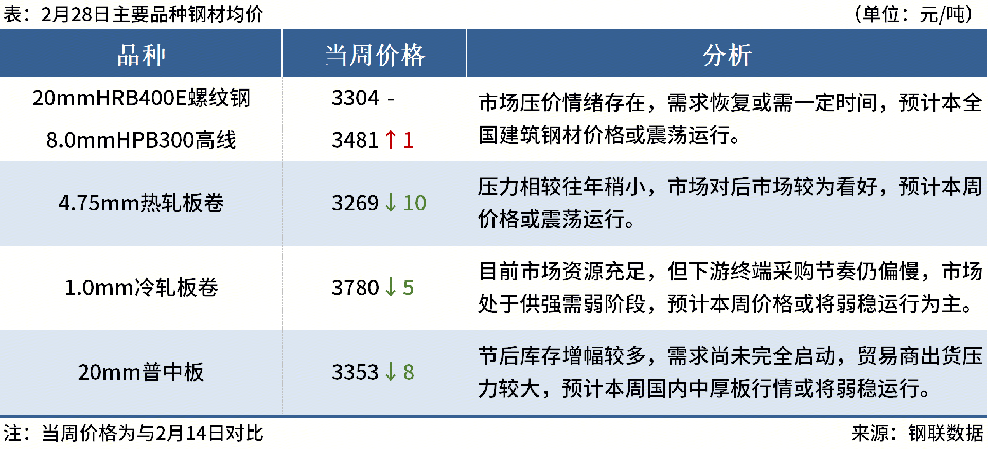 ◎3月1日,江蘇永鋼出臺3月上旬出廠價,螺紋鋼平穩(wěn)、線材盤螺平穩(wěn),現(xiàn)螺紋鋼3450元/噸,線材盤螺3700元/噸。