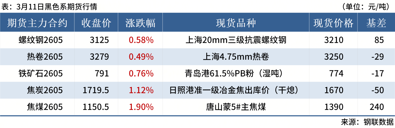 ◎ 3月11日,全國(guó)主港鐵礦石成交88.05萬噸,環(huán)比減9.2%;237家主流貿(mào)易商建筑鋼材成交9.76萬噸,環(huán)比增16.2%。
