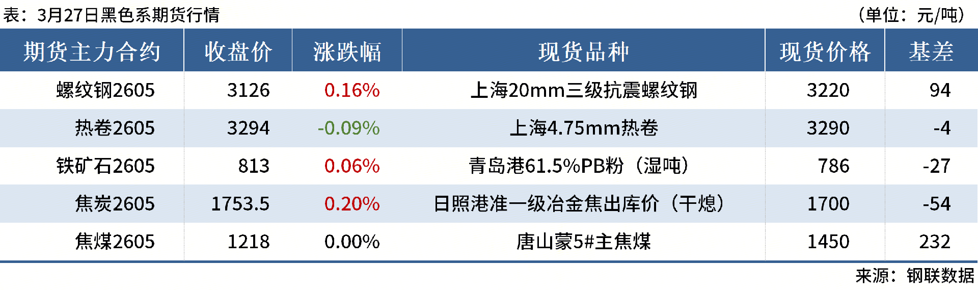 ◎3月27日,全國主港鐵礦石成交66.50萬噸,環(huán)比減3.6%;237家主流貿(mào)易商建筑鋼材成交9.44萬噸,環(huán)比增5.9%。